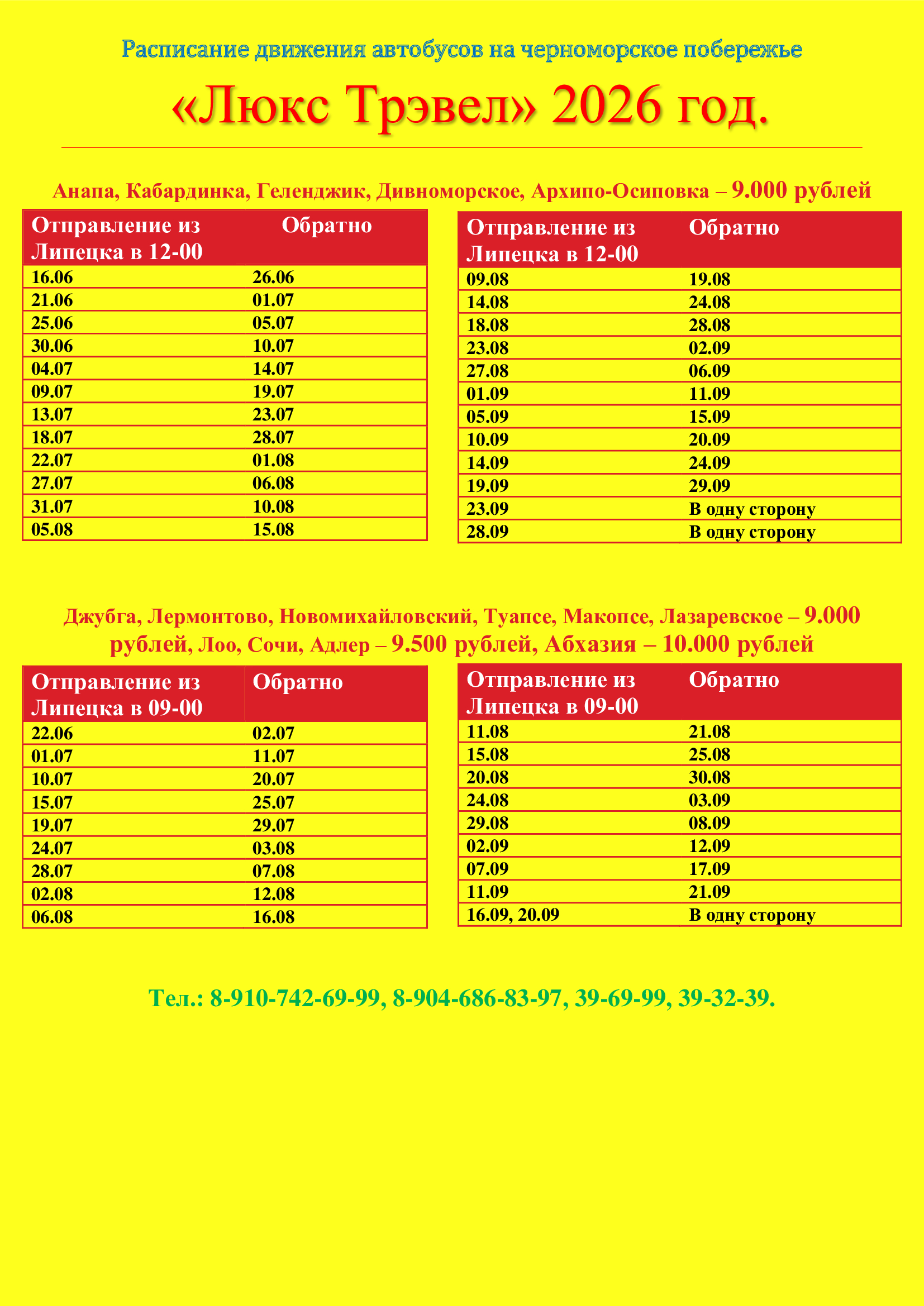 Отправления автобусовМаршрут Липецк – Москва (МАВ Красногвардейский)Автобус на Черноморское побережье